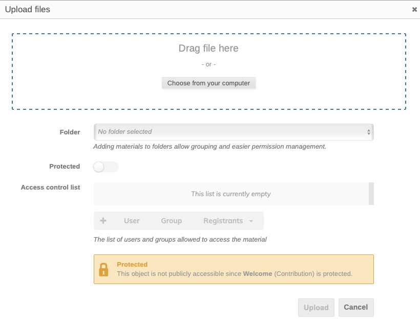 To upload presentation material to Indico as a submitter, follow these steps: